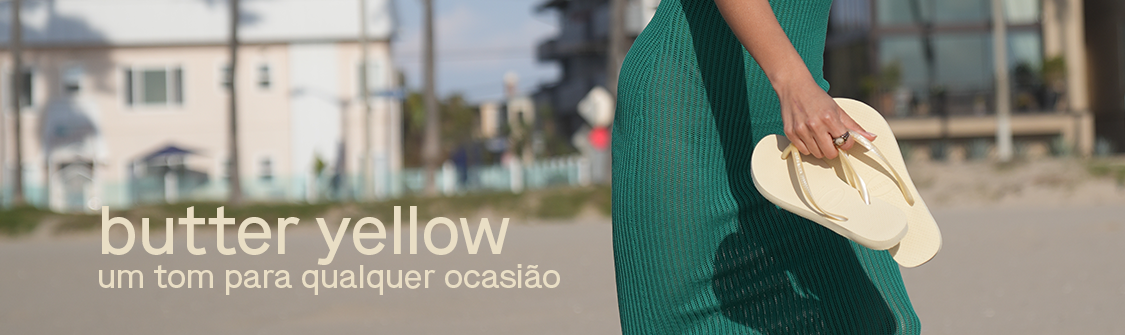 Descobre a coleção Butteryellow da Havaianas, onde o estilo vibrante se junta ao conforto lendário das nossas chinelas brasileiras. Este tom suave e alegre de amarelo manteiga dá um toque fresco e versátil ao teu visual – ideal para quem quer destacar-se com elegância e personalidade. Perfeitas para a praia, a cidade ou um dia de descanso, as Havaianas Butteryellow oferecem o máximo conforto, durabilidade e um design intemporal.